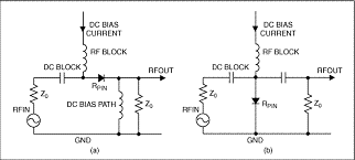 圖2. RF信號(hào)通過(guò)串聯(lián)(a)或并聯(lián)(b)配置的PIN二極管衰減