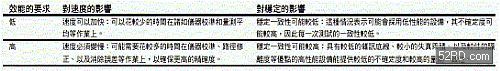 表1:以效能為首要的考量條件時,最重要的相互影響因素是效能和速度。