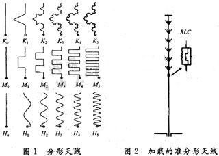 由于單純的RLC加載對小型化天線設計具有局限性。在保證一定效率的前提下,要進一步減小單極子天線的尺寸,還需要做進一步的研究。其中彎折線天線和分形天線是適應設計發展的又一技術方法。如圖1所示。
