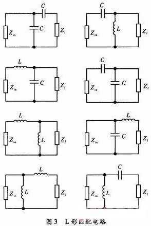 L形匹配電路:這類電路具有線路簡潔和成本較低的優(yōu)點(diǎn),缺點(diǎn)是窄帶電路。由于要考慮匹配和功率的損耗,盡量使用電感和電容性的元件,因此共有8種基本的電路可供選擇。要設(shè)計合理的匹配電路就要選擇合適的電容電抗元件參數(shù),計算元件參數(shù)有兩類方法:通過阻抗直接計算和通過史密斯圓圖。前者的優(yōu)點(diǎn)是計算精確且適合計算機(jī)計算,后者是一種直觀有效的設(shè)計,可以充分合理地選擇最優(yōu)性能。現(xiàn)在可以通過使用計算機(jī)和功能強(qiáng)大的軟件直接設(shè)計。