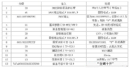 表1 發送短信的格式