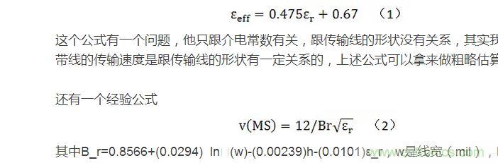 下面列舉幾個微帶線傳輸速度的經(jīng)驗公式