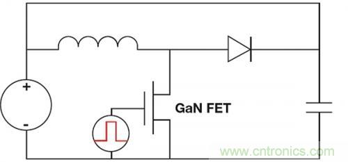 功率GaN FET被用在硬開關和數MHz的諧振設計中。上面展示的零電壓 (ZVS) 或者零電流 (ZCS) 拓撲為數千瓦。SOA曲線的應力最大的區域是右上角的電壓和電流最高的區域。在這個硬開關區域內運行一個功率GaN FET會導致由數個機制而造成的應力增加。最容易理解的就是熱應力。例如,在使用一個電感開關測試電路時,有可能使器件從關閉時的電流幾乎為零、汲取電壓為幾百伏,切換到接通時的電流幾乎瞬時達到10A。