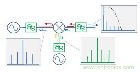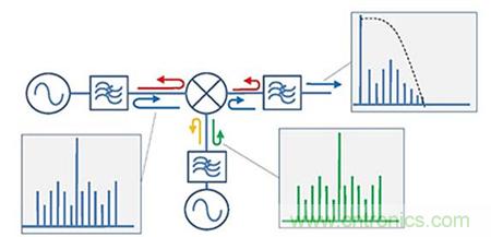 互調抑制一直是衡量混頻器設計的目標之一。基于當前半導體工業的發達,我們可以通過利用高動態范圍的場效應管成功實現了不同水平的互調抑制。然而,即使最好的混頻器也會在它的每個端口產生一些互調產物,并且這些互調產物會成為影響到周邊射頻鏈路中的因素。當傳統濾波器要濾除這些互調產物時,他們會被完全反射回到混頻器,并與基波信號重新合成而產生大量的假信號。這些假信號會因為可能落在所需的頻帶內而通過濾波器輸出到中頻,進而限制了整個系統的動態范圍。