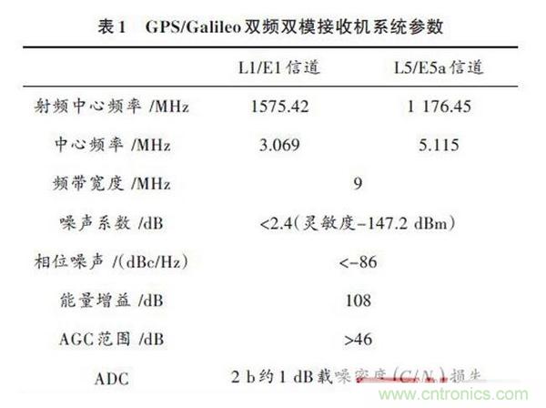 在參考接收機的性能要求的基礎上,設計GPS接收機射頻前端芯片的各項系統指標見表1.