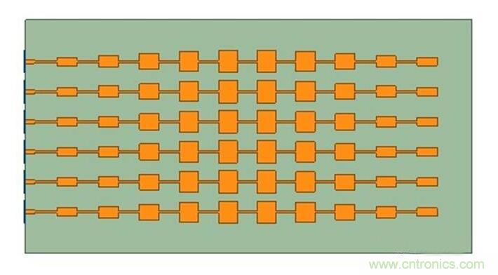 圖3 串饋微帶貼片線陣結構示意圖