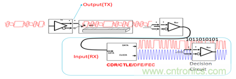 【導(dǎo)讀】在用戶進(jìn)行系統(tǒng)或者芯片測試的時候,一般主要驗證幾個方面的性能和可靠性,包括系統(tǒng)發(fā)送端的信號質(zhì)量,鏈路的損耗/串?dāng)_,接收端的容限。如下圖1,一個鏈路系統(tǒng)的基本架構(gòu)。通常在發(fā)送端會使用FFE來補(bǔ)償鏈路的損耗,接收端會采用DFE/FFE等方法來進(jìn)行均衡,一些比較高速率的標(biāo)準(zhǔn)如PCIE 4.0/5.0,SAS4等還會采用FEC來進(jìn)行糾錯,當(dāng)然接收端還需要CDR來從串行信號里面進(jìn)行時鐘恢復(fù)得到同步時鐘來對信號進(jìn)行采樣。