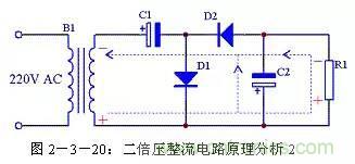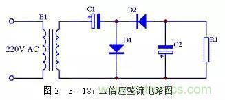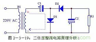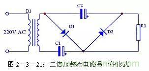 二倍壓整流電路還有另外一種形式的畫法,見圖2-3-21,其原理與圖2-3-18完全一致,只是表現形式不一樣。