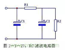使用兩個電容和一個電阻組成RC濾波電路,又稱π型RC濾波電路。見圖2-3-27所示。這種濾波電路由于增加了一個電阻R1,使交流紋波都分擔在R1上。R1和C2越大濾波效果越好,但R1過大又會造成壓降過大,減小了輸出電壓。一般R1應遠小于R2。