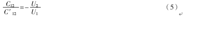 如果將兩個三端電容串接起來,分別用兩個信號源供電,就形成了如圖4所示的等效電路,其中,Y12=jωC12,Y′12=jωC′12。在公共點D與接地端之間連接一個檢流計,調節兩個外加電壓的幅值和相位,使通過兩個直接電容流向D點的電流大小相等、方向相反,直道檢流計指零,便可得到下面的關系式: