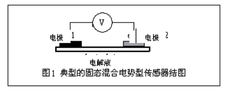 - 具有不同催化作用的電極材料的固態混合電勢電化學傳感器在不同的電極上產生不同的平衡電勢