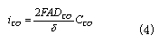 式中,iCO為CO氧化反應的電流密度 CCO為CO的體積濃度;DCO為CO的擴散系數