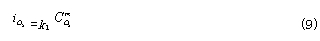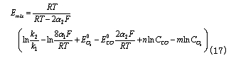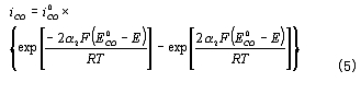 為CO的交換電流密度;a為CO氧化反應的電荷傳遞系數。——— 在平衡條件下,上述兩反應的電流密度相等,所以有