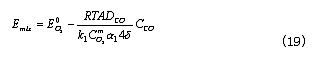 聯立等式(6)、(9)、(10) 、(12)和(15)得平衡混合電勢為: