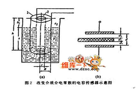 b 改變介質介電常數的電容傳感器