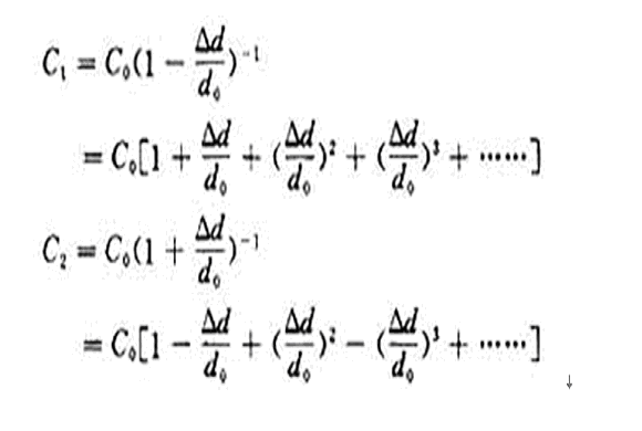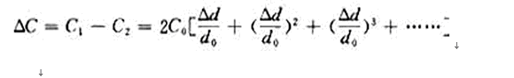 雖然電容的變化量仍舊和位移Δd成非線性關系,但是消除了級數中的偶次項,使線性得到改善。當