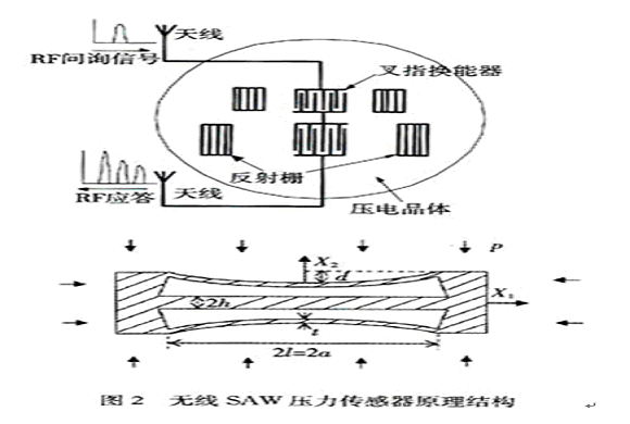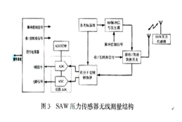 在嵌入式大氣數據系統中,SAW壓力傳感器無線測量的優點可提高其應用的靈活性。圖3所示為SAW壓力傳感器無線測量結構。