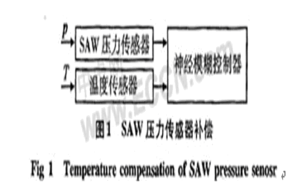 聲表面波(SAW)技術(shù)是一門新興熱門研究課題之一,國內(nèi)外已有溫度、壓力、加速度等傳感器的相關報道。SAW壓力傳感器借助于它無以倫比的性能,諸如:1)數(shù)字號輸出;2)高靈敏度、高分辨力、抗干擾能力強;3)易于大規(guī)模集成。正是由于這些自身的優(yōu)越性,它有著廣泛的應用領域。但美中不足的是SAW壓力傳感器對環(huán)境的要求比較苛刻,SAW振蕩器輸出頻率信號隨著壓力、溫度、磁場等外界因素變化而變化,特別是溫度的影響是測量誤差的主要來源,為保證SAW壓力傳感器高準確度和高靈敏度測量,必須進行有效的溫度補償。本文將神經(jīng)網(wǎng)絡和模糊控制技術(shù)相結(jié)合,對SAW壓力傳感器進行智能化溫度補償,通過此方法進行的改進,使SAW壓力傳感器能更好地應用到工程領域。
