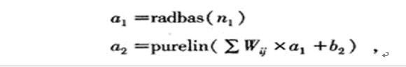 鑒于BP神經(jīng)網(wǎng)絡訓練過程需要對所有權(quán)值和閥值進行修正,是一種全局逼近神經(jīng)網(wǎng)絡,但訓練速度較慢,不適用實時性較強場合,故采取了局部逼近網(wǎng)絡——徑向基網(wǎng)絡。算法訓練關系式如下: