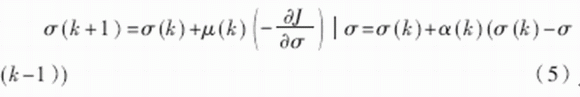 其中,μ(k)為學(xué)習(xí)率,α(k)為動量因子,也稱為遺忘因子,又稱動量項或阻尼項。將其稱為遺忘因子可從對于新舊信息的學(xué)習(xí)與遺忘的角度來理解;稱為動量項或阻尼項是因為在網(wǎng)絡(luò)的學(xué)習(xí)訓(xùn)練中,此項相當(dāng)于阻尼力,當(dāng)訓(xùn)練誤差迅速增大時,它使網(wǎng)絡(luò)發(fā)散得越來越慢。總之,它使網(wǎng)絡(luò)的變化趨于穩(wěn)定,有利于網(wǎng)絡(luò)的收斂。
