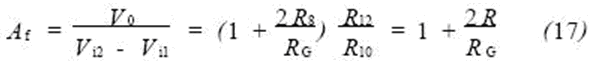 移用放大器從電路結構可知,這是一種同相并聯差動放大器,其對稱性結構使整個放大器具有很高的共模抑制能力,特別是適用于長距離測量。其數學模型為: