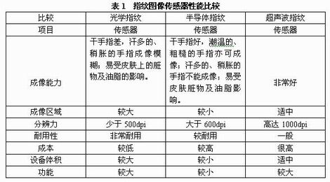 為克服物理方式的缺點,開發(fā)的光學(xué)傳感器、半導(dǎo)體傳感器、超聲波傳感器等對獲取高質(zhì)量指紋圖 像提供了良好的技術(shù)保障,具有很好實用價值。同時,更先進的指紋圖像傳感器亦在研發(fā),目的是獲得足夠的指紋細節(jié),并使指紋圖像達到較高分辨力,提高指紋識 別準確性、可靠性。本文主要介紹各種指紋圖像傳感器技術(shù)關(guān)鍵、性能特點,并簡要介紹其應(yīng)用情況及發(fā)展趨勢。