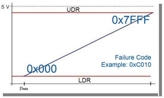 模擬輸出只允許進行信號范圍內(nèi)(如10-90%)的傳感器信號傳輸,并通過開關將低診斷范圍(LDR)和高診斷范圍(UDR)轉(zhuǎn)換為故障狀態(tài)。因此,其無法傳送更詳細的故障信息。