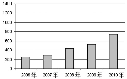 2006-2010年MEMS手機市場規模 單位:百萬美元