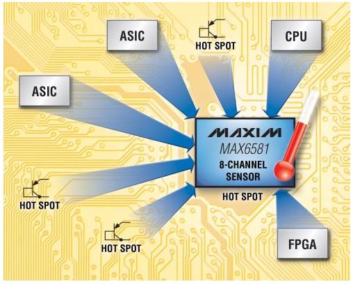 Maxim推出精度為±1°C的8通道溫度傳感器MAX6581。器件具有7路遠端檢測通道,可監(jiān)測帶有多個熱源的ASIC、FPGA、CPU和電路板。每路遠端檢測通道均具有串聯電阻抵消和β補償功能,可實現最高精度。MAX6581包含了8路溫度檢測通道,但這8路通道卻僅需單個I²C地址,因而有效降低了電路板面積和系統(tǒng)整體成本。