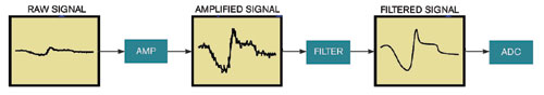 圖1,一只傳感器的模擬信號路徑可以分為幾級:放大、濾波和數字化。