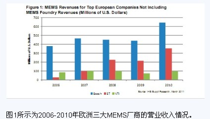 據(jù)IHS iSuppli公司的研究,2010年微機電系統(tǒng)(MEMS)產(chǎn)業(yè)蓬勃發(fā)展,總體增長了18%,而歐洲三家廠商更是取得了上乘表現(xiàn)。