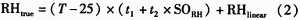 由于溫度對濕度的影響十分明顯,而實際溫度和測試參考溫度25℃有所不同。補償公式如式(2)所示。