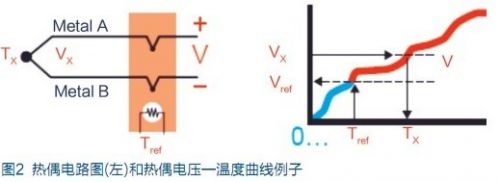 不過,電壓和溫度間是如圖2所示的非線性關系,溫度由于電壓和溫度是非線性關系,因此需要為參考溫度(Tref)作第二次測量,并利用測試設備軟件和∕或硬件在儀器內部處理電壓-溫度變換,以最終獲得熱偶溫度(Tx)。Agilent34970A和34980A數據采集器均有內置的測量了運算能力。