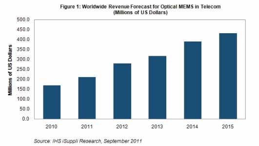 據IHS公司的最新MEMS市場研究報告,由于市場對寬帶互聯網服務的需求持續激增,預計2011年以及隨后幾年光MEMS銷售額強勁增長。光MEMS是超高速光纖網絡中的關鍵部件。
