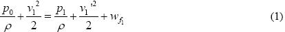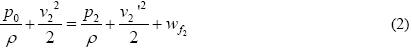 式中:p0為截面A-A*處的壓強;p1,p2分別為截面B-B*處內、外的壓強;v1,v1’,v2,v2’分別為兩流線進出位置的流速;wf1、wf2分別為兩流線上的粘性損耗。