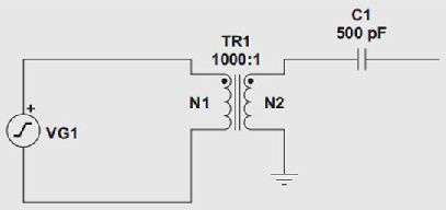 最后,如果這種生成器需要代表實際物理信號,則可以使用變壓器,如圖2所示。本例中,我們建模了一個具有0.5pC/g靈敏度和500pF寄生電容的生成器。正弦波生成器每單位g輸出1V以實現仿真。變壓器在其次級線圈將它向下調節至 1mV.施加給C1(500 pF)的1mV擺動,將會如我們預計的那樣在下一級注入 Q = VC = 0.5 pC.