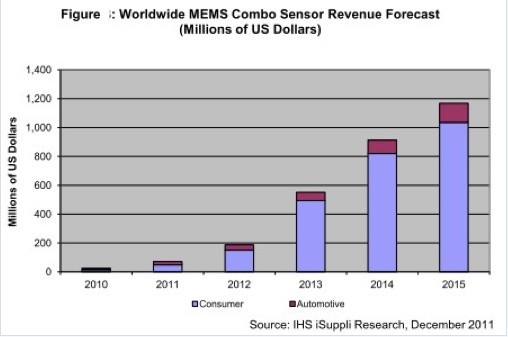 - MEMS組合傳感器的銷售額到2015年將接近12億美元