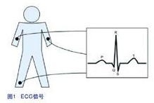 心電圖機(jī)(ECG)可實(shí)時(shí)記錄病人的心跳活動(dòng)。心跳信號(hào)是通過(guò)三個(gè)連接到病人身體的電極測(cè)量出來(lái)。圖1所示為其中一個(gè)電極輸出的ECG信號(hào),圖中包含有五個(gè)測(cè)量點(diǎn),分別是Q、P、R、S、和T,這些測(cè)量點(diǎn)可用來(lái)診斷病人患上心臟病的可能性。