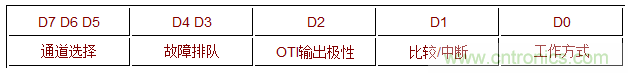 D1 用于設置OTI的工作方式。0表示采用比較方式工作,即當環境溫度超過TOTI時觸發OUT輸出,其輸出電平一直保持到環境溫度降至THYST;1表示采用中斷方式工作,即當環境溫度超過TOTI的觸發OTI輸出,其輸出電平將一直保持到下一次讀操作,而在這期間,即使環境溫度降到THYST,輸出電平也不翻轉;