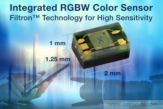 【導讀】近日,Vishay宣布,推出具有I2C接口的小尺寸、集成式、高性能RGBW顏色傳感器,采用可實現準確RGBW光譜感光度的Filtron技術。該傳感器的Filtron技術實現優異的RGBW光譜感光度,采用2 mm x 1.25 mm x 1.0 mm的小尺寸封裝。