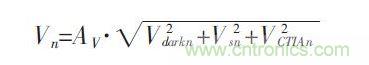 在本電路中,Cfb=2 fF,Cpd=1.3 pF,CL=1 pf,α=1.5,T=300 K,則Vn=2 mV。