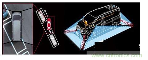 環視攝像頭,或稱為全景式影像監控系統,能將汽車頂部各個方向鳥視畫面拼接起來,并動態顯示在車內的液晶屏上;此外,環視攝像頭還能識別停車通道標識、路緣和附近車輛。一些最高級的環視影像系統配合聲納使用可以發出實時預警,提醒駕駛員和障礙物靠得太近。