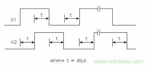 該芯片產生的正交X方向輸出信號模擬了普通編碼器的輸出。X和Y信號都可以用于2D系統。OM02以最高約25kHz的頻率產生X1和X2正交信號。圖1顯示了正向X運動(向右方向)的時序圖。這種正交輸出在需要時還可以用于直流步進電機控制。