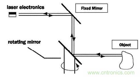這套發射/接收組件和旋轉鏡面結合在一起,能掃描至少一個平面。鏡面不只反射二極管發出去的光,而且也能把反射回來的光再反射給接收器。通過旋轉鏡面,能夠實現90到180度的視角,并且大大降低系統設計和制造的復雜度,因為鏡面是這里面唯一的運動機構。