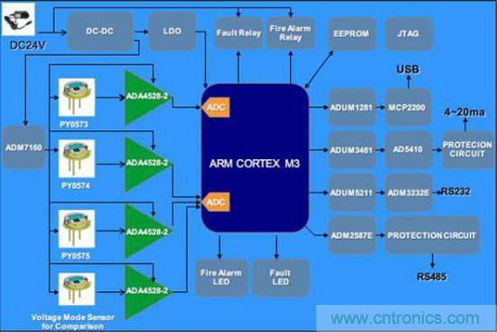 作為一個參考設計,這個方案的主控芯片選用了流行的ARM Cortex-M3架構,這樣能方便開發者將自己的算法移植進行移植,給開發者帶來更大的靈活度。同時,參考方案中支持豐富的接口,如RS232、RS485,能夠滿足大多數應用場景的需求。