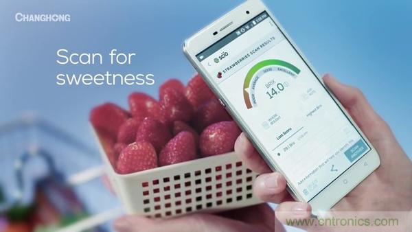 合作方ADI主要為這款手機提供光譜傳感器以及相關的算法,CP公司則負責提供APP以及成分分析數據。在功能上,可以直接使用這款手機判斷分析水果中的成分、甜度等信息。此外,它還能對更多物體進行成分分析,比如面包、肉以及藥物等。