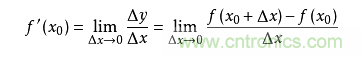 導數求的是函數在某一點上的變化率。例如從A點開車到B點,通過距離和時間可以算出平均速度,但在其中C點的瞬時速度是多少呢?如果用x表示時間,f(x)表示車子從A點駛出的距離,那么在x0的瞬時速度可以轉化為:從x0時再開一個很小的時間,例如1秒,那么這一秒的平均速度就是這一秒開出的距離除以1秒,即(f(1+x0)-f(x0))/1。如果我們用的不是1秒而是1微秒,那么這個1微秒內的平均速度必然更接近x0時的瞬時速度。于是,到該時間段t趨向于0時,我們就得到了x0時的瞬時速度。這個瞬時速度就是函數f在x0上的變化率,所有x上的變化率就構成了函數f(x)的導數,稱為f`(x)。即: