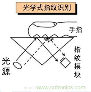 光學(xué)傳感器的發(fā)展歷史可能是最久的了,已經(jīng)有30年的歷史了。實(shí)現(xiàn)的原理也是最簡單的。 它主要是利用光的折攝和反射原理,將手指放在光學(xué)鏡片上,手指在內(nèi)置光源照射下,光從底部射向三棱鏡,并經(jīng)棱鏡射出,射出的光線在手指表面指紋凹凸不平的線紋上折射的角度及反射回去的光線明暗就會不一樣。用棱鏡將其投射在電荷耦合器件上CMOS或者CCD上,進(jìn)而形成脊線(指紋圖像中具有一定寬度和走向的紋線)呈黑色、谷線(紋線之間的凹陷部分)呈白色的數(shù)字化的、可被指紋設(shè)備算法處理的多灰度指紋圖像。