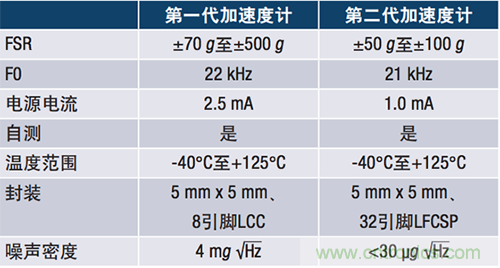 表2. 第一代和第二代MEMS加速度計針對狀態監控的關鍵規格比較