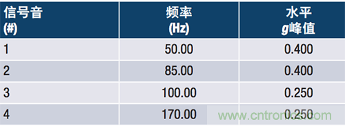 在振動測試儀上重建了一個實際場景,例如在基于振動的狀態監控中所述的場景,以便利用已知激勵信號比較器件。本例展示了一臺以5100 rpm (85 Hz)運轉的汽輪機和一臺未對準的3000rpm (50 Hz)同步發電機的振動水平。該場景說明的是采用隨機振動測試模式時,振動系統經編程所產生的頻率和振幅。表1列出了兩個器件在目標頻率的振幅測量結果。